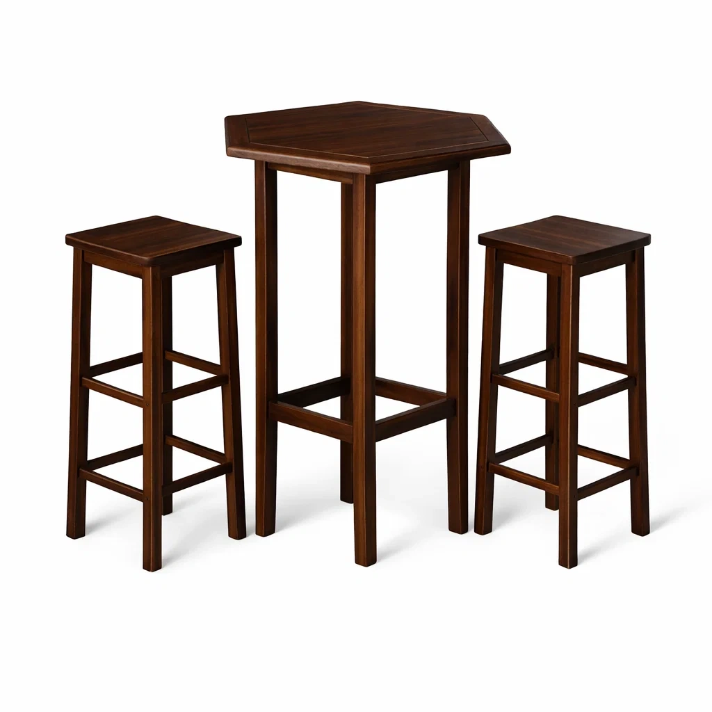 Product List: 1 hexagonal bar table. 2 bar stools