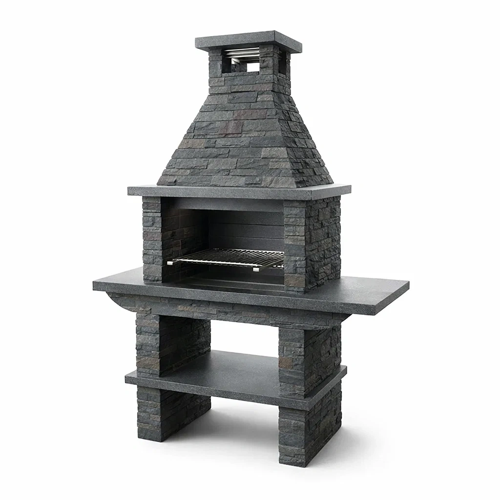 BBQ Grill Stone Barbecue Grill with Shelves in Grey