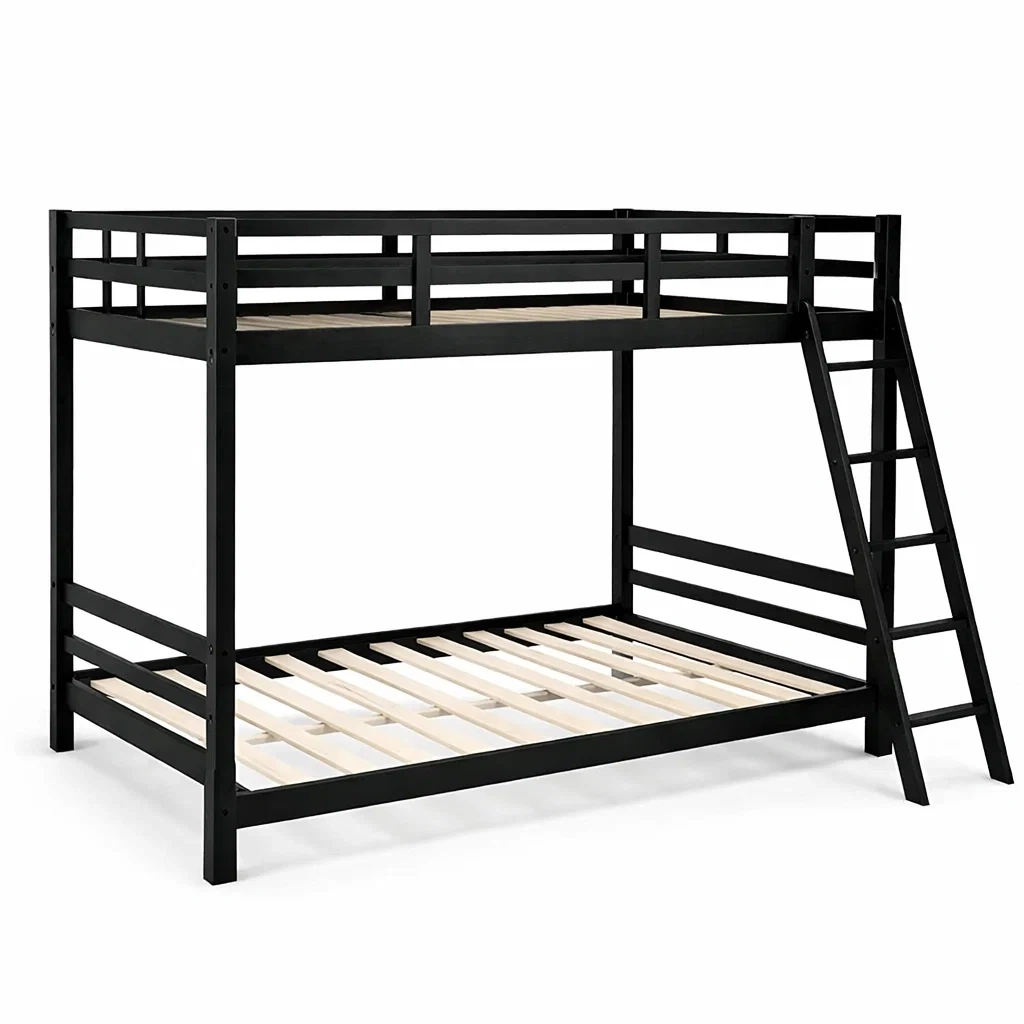 The bed features a built-in ladder for easy access to the top bunk.